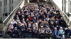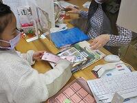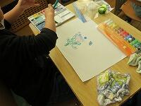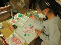 「ばれん」を使って丸を描くように、心をこめて、丁寧に刷りましょう。そ~っと版画用紙をめくって、、、出来上がり。みなさん、上手上手。