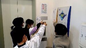 乾燥台に乗せて、乾かしましょう。すてきな版画作品ができ上りましたね。木版画デビュー、がんばりました。