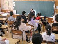 3時間目、理科室では6の2のみなさんが、理科『水よう液の性質』の学習のまとめを行っていました。日下部先生からの指令「水よう液を見破れ」に挑戦中。