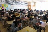 でしたが、現在は『感染状況警戒度レベル1』であることから、体育館に集合して終業式