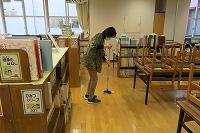 レールの隙間の拭き掃除をしてくれているのは、1年生さん