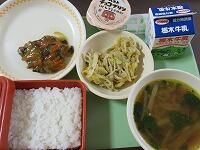 今日の給食は『とちぎ給食・食事小江戸料理キラキラ』で「ごはん・牛乳・もろの甘酢あんかけ星・ごま和え・濃しょう汁星・チョコプリン」の献立でした。「もろの甘酢あんかけ星」と「濃しょう汁星」は江戸時代から伝わるとちぎの伝統料理キラキラです。濃しょう汁には栃木市産!の味噌が使われていました。