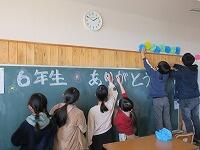 そのころ、6年生キラキラの各教室では、、、5年生のみなさん星が6年生の教室周りを飾付け笑うしていました。