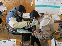 5年生は外国語キラキラの学習で、いろいろな建物を組み合わせオリジナル笑うのわが街キラキラをつくり、「Go straight.上」や「Turn right.右」「Turn left.左」の表現を使って、その街を上手に案内にっこりする学習をしています。