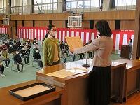 1年生も、元気よく返事をして、立派な態度で修了証を受け取ることができました。校長先生の話、そして、最後に校歌