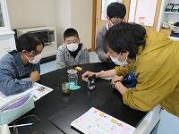 底なし集気びんに「ふたをした場合!」や、底なし集気びんの下の粘土に切り込みを入れて「すきまをつくった場合!」の比較実験理科・実験も行いました。