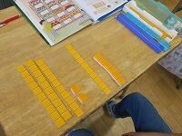 今日の学習のめあて星は、「24+15の計算のしかたを考えよう」です。大型テレビ情報処理・パソコンで式を確認したら、算数ブロックにっこりを机上に出して、みんなでたし算の方法を虫眼鏡確かめました。みなさん、真剣にブロックを操作して、答えを求めることができました花丸