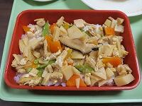 たけのこごはんキラキラは、たけのこがとれる今の時期においしい料理給食・食事です。給食でも1年に1回しか登場しないので、よく味わって笑ういただきました。