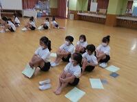 今日は1年生の心臓検診ハートを実施しました。クラスごとに日惜ホールに集合したら、順番に台にあがってじっとして待ちます。