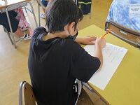 3の1では、スローガンに入れたいキーワード鉛筆を考えて、進んで自分の考えをお知らせ発表し合っていました。