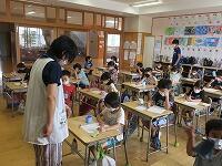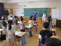 今日も晴れ晴れてとても暑い汗・焦る日になりました。熱中症予防運動指針!に則り、今日の昼休みの外遊び急ぎは控えるバツように、また、登下校時にはマスクキラキラをはずして歩くこと、地区別下校時は時間を守って校庭にすばやく集合することを放送お知らせしました。