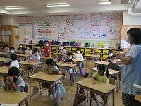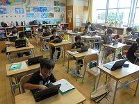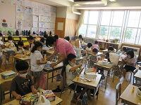 みなさん、がんばりましたね。児童の体調と安全に留意して、学習を進めています。