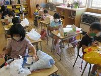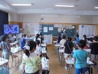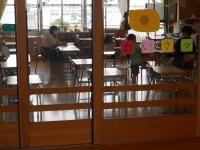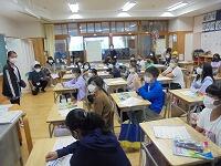 』のみなさんが家庭科室に集まってくださり、児童が使用している給食