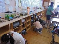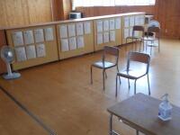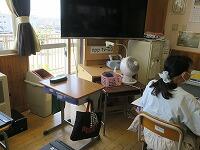 と対角の教室かどや後ろのロッカーの上などに設置しています。