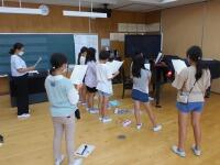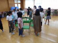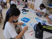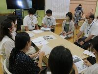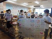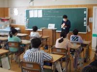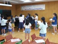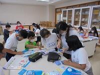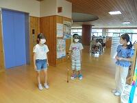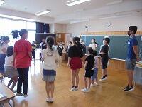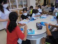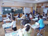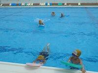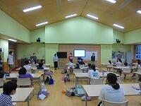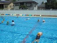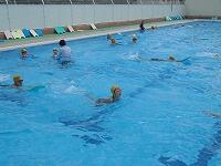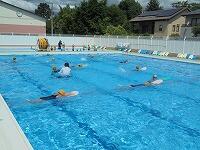 をしながら取り組みました。また、見学児童はプールサイドではなく、冷房