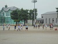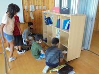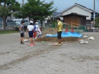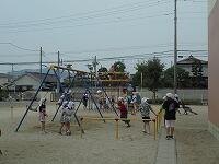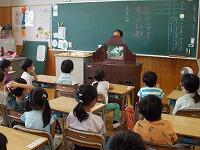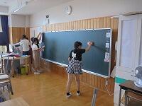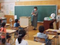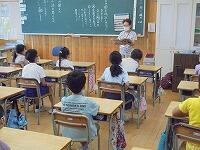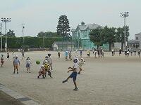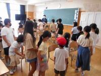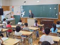 になって児童が遊びに来てくれるのを待っているようです。外山先生、暑い中