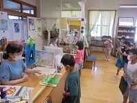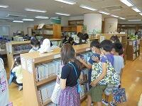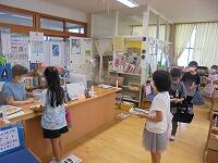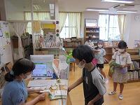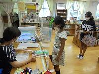 。親子で来室した人やなかよし学童のみなさんが本を借りに来ていました。間隔を空けて