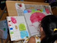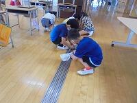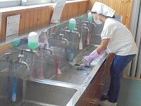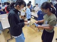 します。先生が配ってくれたクリームを手の全面に塗ったら、水道でしっかりと