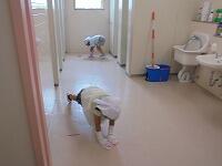 も一緒に作業してくださいました。給食白衣がきれいに生まれ変わり