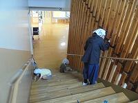 も、児童が遊ばない時間を使ってきれいにペンキ塗り