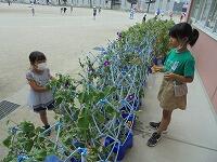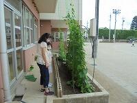その隣、3年生の花壇では今日ぐんぐんと伸びていたひまわり