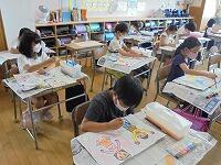 みんな集中花丸して、自分の想像した世界グループを描いていましたにっこり