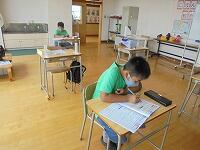 午前中は1~3年生、午後は4~6年生の学習時間です。今日は2日目。午前中は4名の児童が、集中して花丸課題鉛筆に取り組んでいました。