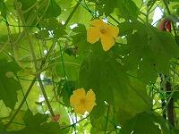 かわいい花キラキラが咲いて、ゴーヤ!も実っていました。