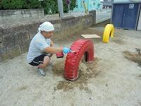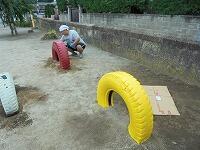 校庭南側のろくぼく!も、校庭東側のタイヤ!も、あざやかな色キラキラになって児童が遊びに来てくれるのを待っているようです。外山先生、暑い中汗・焦るの作業、ありがとうございます笑う