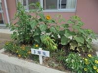 その隣、3年生の花壇では今日!ぐんぐんと伸びていたひまわりキラキラの花が咲きました。理科理科・実験の学習鉛筆で植えた、マリーゴールドキラキラやホウセンカキラキラとともに、元気の出る笑う黄色い大きなひまわりの花キラキラが太陽晴れに向かって咲いています。
