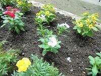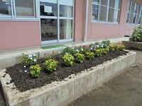 排水が悪く、外山先生が土の入れ替え汗・焦るをしてくださった職員室前の花壇は、栽培委員会星担当の先生方がきれいに花キラキラを植えてくださいました。