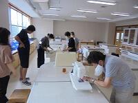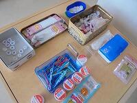 あらかじめ、各クラスごとの白衣の傷み具合を調査鉛筆し、今回は、白衣の袖口のゴムの入れ替え了解やポケットの修繕ピース、ボタン付け了解、そして、帽子のゴム入れ替え星は30枚分!もありました。ボタンやゴムは多めに準備しました。ミシンを使って修繕してくださる方もいます。