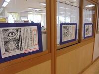 図書室廊下には、前回までの妖怪クイズ?!の答えが掲示されています。