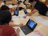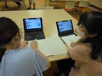 まずは、全体会グループです。今年度の重点目標1ツ星や、各部会の話合いの視点等2ツ星を確認しました。各自がタブレットから参加情報処理・パソコンしましたキラキラ