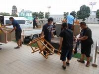 まず、市の余剰物品を取りに行き急ぎ、戻ってきたところを全職員で下ろす作業汗・焦るをしました。