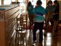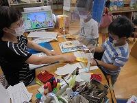 また、夏休み後半の「図書室開放」グループに向けての準備も着々と笑う行っています。市の余剰物品でいただいた棚の整理キラキラをしたり、子どもたちが楽しめる様々な「しかけ」イベントを用意したりしています。「妖怪クイズ」ひらめきはその一つで、後半も一日一問、出されるとのことです。