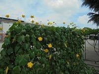 学校花壇が緑のカーテン!になっていて、たくさんの黄色い花キラキラがついているのが、職員室からよく見えます。