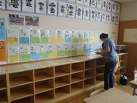 「貯金箱星はここだね。」「ポスター美術・図工はどこに置こうかな~。」