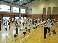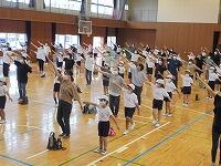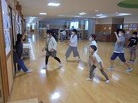 の後、さっそくいろいろな動きを教えてもらって、親子でチャレンジ