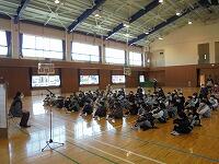 今日は、りんごの会キラキラのみなさんによる『お話し会キラキラ』があり、2時間目に4年生、3時間目に5年生、4時間目に3年生のみなさん笑うが、体育館でお話お知らせを聞きました。