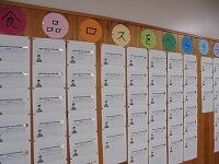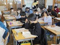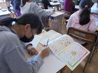 教科書の栄養分類表星や教室に掲示してある献立表笑うも参考に、みなさん熱心に花丸献立作り鉛筆に取り組みました。