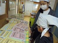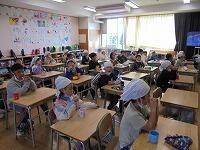 給食では、今日と明日『給食給食・食事もりもり笑う作戦!』を実施、給食を残さず食べられた花丸・嫌いなものもがんばって一口食べられた了解・いつもより食べられた気がするピース日に、シール笑うを貼ることができます。1・2年生の教室をのぞいてみると、、、