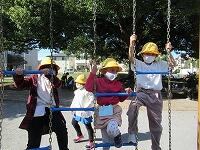 好天晴れに恵まれ、青空が広がる中、遊具笑うで遊んだり、、、