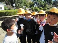 公園内の秋を虫眼鏡見つけたり、みんなで元気に笑う活動急ぎしました。