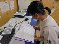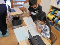 インタビューが終わったら、座席を前向きに戻してインタビューメモ鉛筆を書きましょう。忘れちゃったところは、録画視聴覚を再生して、確認虫眼鏡しながら書きます。「録画を確認しても分からないときは、お友だちに聞きに行ってもいいです。」あっという間に、インタビューメモ鉛筆ができました花丸