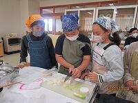 包丁!も上手に使って、小口切りピースやいちょう切り了解に挑戦しています。そろそろお鍋の様子はどうかな。ごはんの火加減虫眼鏡も確かめて、、、
