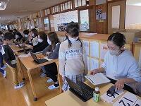 3時間目、5年生笑うのみなさんがアリアン先生キラキラとの外国語星の授業で、一人ずつ発表お知らせをしていました。今日の学習鉛筆のGOALキラキラは「Let`s tell the prefectures you want to go to.」で、自分が選んだ県!とその理由について、大型テレビに画像視聴覚を映しながら「I want to go to 〇〇.」や「I can see虫眼鏡(eat給食・食事・buyピース)」を使って、一生懸命にお知らせ伝えています。みんな真剣に花丸聞いています。