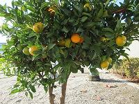 たわわに実ったみかんキラキラの木には、真っ赤に紅葉した桜の葉がのっていました。色とりどりの校庭の木々です。