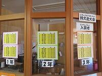 吾一広場・放送室の窓に、先週金曜日に行われた『校内学校持久走急ぎ大会キラキラ』の上位入賞者キラキラの氏名とタイムが貼り出されました。各学年!、男女別ピース、8位までキラキラのみなさんです。通りかかった児童が、掲示を見上げていました。入賞者キラキラはもちろん、最後まで走り抜いたみなさん、みんな笑うよくがんばりました花丸
