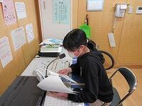 2回のオープンスペース星に、ボランティアさん方キラキラがスタンバイ了解、「よろしくお願いします。」笑う元気にごあいさつお知らせ。児童がかけ算九九カード鉛筆を持って、一人ずつ九九の暗唱お知らせに挑戦します。